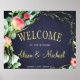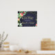 Chic und klassisch horizontal Hochzeitsschild Poster mit rustikalen Garten rosa und korallenroten Rose mit aquamarinem blauem und schlauem grünem Blattwerk und Blätter und goldenen Schriftzeichen auf dunkelblauem Chalkboard-Hintergrund. Ideal für Ihren Frühlingssommer | Herbstfall | Garten | Hinterhof | Land rustikale elegante themed Hochzeit.
