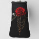 Eine rote Rose, die in Eisenketten auf schwarzem Hintergrund gebunden ist, schafft eine herrliche Goth Golf Kopfdecke.