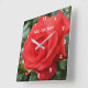 rote Rose in der blutenden Blume Runde Wanduhr