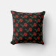Dieses elegante, blumengeschmückte Kissen zeichnet sich durch ein sich wiederholendes Muster einer exquisiten Single-Scharlachrot-rote Rose mit drei grünen Blätter vor schwarzem Hintergrund aus.