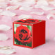 Herrliche rote Rose mit Morgentauben. Schöne rote Rose im Garten. Die rote Rose symbolisiert Liebe, Leidenschaft, Romantik und Hingabe.