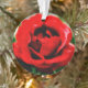 Herrliche rote Rose mit Morgentauben. Schöne rote Rose im Garten. Die rote Rose symbolisiert Liebe, Leidenschaft, Romantik und Hingabe.