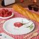 Maßgeschneiderte Personalisiert Red Watercolor Rose Stem Wedding oder Dusche Papier Platte. Brautparty. Hochzeitsempfang. Rote Blüte. Roter Text.