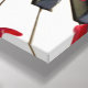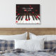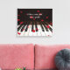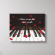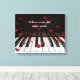 Fallende rote Rose Blätter auf alten Klaviertasten mit inspirierendem Musikziffer. Zitat kann geändert werden.