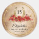 Fügen Sie Ihren Gastgeschenken einen rustikalen Charme hinzu, Dankeschön an Geschenke oder Umschläge mit diesen vielseitigen Rot- und Goldvorlagenaufklebern, die originale Kunstwerke von Raphaela Wilson enthalten. Schöne rote Aquarelltöne blühen auf dem alten Vintagen Pergamentpapier, das mit Imitaten aus metallischem Gold für eine einzigartige, elegante Touch besticht. Ein goldenes Hufeisen umrahmt Ihre Geburtstagsnummer, während Ihr Name, Ihre Feier und Ihr Datum in anmutiger Kalligraphie-Schrift und moderner Typografie dargestellt werden. Obwohl es mit einem rustikalen ranchera quinceanera Thema gezeigt wurde, mit einer gewissen Umformung, ist dieses Design perfekt für Sommerreitfeiern, einen Western süßen 16 Geburtstag, Engagement Party Party, Cowgirl-Brautpartys, oder Country-Babyduschen. Sie können es sogar noch individueller gestalten, indem Sie einen Cowboystiefel mit Blume, einem Pferd, oder einem glitzernden Imitat Glitzer Goldkrone / Prinzessin Tiara für eine Touch von Märchen Flair. Kategorie: Hochzeitsaufkleber im Kreis; coole mexikanische 15 (16) Umschlag Aufkleber und runde Aufkleber für Quinceanera Party Geschenke. Klassisches Quinceñera-Farbthema: dunkelrot, bordeauxrot, Marmelade, Marsala, hellbraun, braun, beige, antikes Weiß, Elfenbein, gelbes Champagnergold, Schwarz und Weiß.