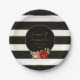 Rote Rose, Schwarz, Weiß und Goldstreifen - Pappteller