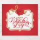Elegante rote Rose auf weißem Etikett mit Goldband.