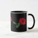 Diese elegante Tasse verfügt über drei exquisite Scharlachrot-rote Rosen, die jeweils mit drei grünen Blätter auf schwarzem Hintergrund gestaltet sind.