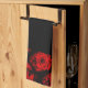 Rote Rose Trim auf schwarzer Hand oder Küchentüche Handtuch