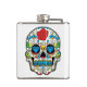 Rote Rose und farbiger Retro-Blumenschädel Flachmann