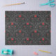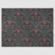 Kleine blutrote Rosen sind innerhalb der schwarzen Damastentwürfe über einem dunkelgrauen Hintergrund. Vervollkommnen Sie für decoupage, die Geschenkverpackung oder Papierhandwerk.