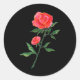 Blumenbilder einer rote Rose mit grünen Blätter und Stielen auf einem schwarzen Aufkleber