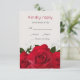 Elegante Hochzeitskarte mit rote Rosen und kleinen weißen Blume.