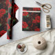 Faltpapier mit schwarzer Hintergrundfarbe und hübscher rote Rose, Blumendruck. Passen Sie dieses Objekt an oder kaufen Sie, wie es ist.
