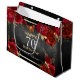Rote Rosen, Imitate Goldfolie Blätter, winzige Rot-und Goldschmetterling. Elegantes Blumendesign für jedes Jahr Geburtstagsfeier. Einfach mit Vorlage personalisieren. Schöne Geschenktüte Design zum Geburtstag.