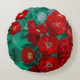 Rote Rosen Blassgrüne Blätter Rundes Kissen