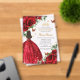 Personalisieren Sie diese boho chic lebhaften roten Blüte Quinceañera / Sweet 16 Geburtstag Acryleinladung einfach und schnell. Klicken Sie einfach auf die Schaltfläche "Weitere Einstellungen", um die Texte zu bearbeiten, Schriftart und Schriftart zu ändern. Mit hellen rote Rosen, Schmetterlingen und einem Mädchen in einem glitzernden roten Ball-Kleid. Matching-Elemente im Speicher verfügbar. c) Somerset Fine Paperie