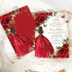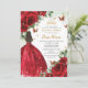 Personalisieren Sie diese schicke, lebendige roten Blumenladen Quinceañera / Sweet 16 Geburtstag Einladung einfach und schnell. Klicken Sie einfach auf die Schaltfläche "Weitere Einstellungen", um die Texte zu bearbeiten, Schriftart und Schriftart zu ändern. Mit hellen rote Rosen, Schmetterlingen und einem Mädchen in einem glitzernden roten Ball-Kleid. Matching-Elemente im Speicher verfügbar. c) Somerset Fine Paperie
