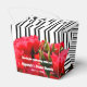 2" x 2" x 2,75" Gastgeschenk-Boxen mit Aquarellfarben-rote Rosen auf schwarz-weißen Streifen und Ihr Dank an Ihre Personalisierung auf der Vorder- und Rückseite. Sehen Sie sich die MATCHING-Elemente in unserer Sammlung an.