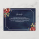 Rote Rosen Florale Navyblaue Hochzeitsdetails Begleitkarte