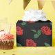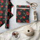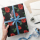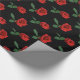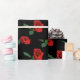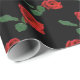 Dieses elegante Verpackungspapier zeichnet sich durch ein sich wiederholendes abstraktes Muster einer Single-rote Rose mit grünen Blätter Set auf einem reinen schwarzen Hintergrund aus.
