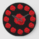 Die Blumenuhr weist anstelle von Zahlen rote Rosen auf schwarzem Hintergrund auf.