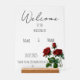Schöne rote Rosen Acryl Hochzeitszeichen. Passen Sie Ihre Wünsche an.