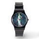 Uhr, Klassische Damenuhr mit schwarzen Lederarmband