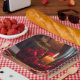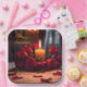 Diese Teller zum Jubiläum bieten eine romantische Szene mit rote Rosen und einer Kerze.