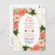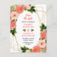Diese lustige und skurrile Save the Date Postkarte bietet die rote Rosen der Korallenrosa und das Blattwerk auf einem goldenen geometrischen Rahmen. Der Text kombiniert handgeschriebene Skript- und Serif-Schriftart für ein stilvolles und modernes Aussehen. Das ist perfekt für einen Frühling oder Sommer rustikale Hochzeit.