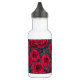 Rote Rosen mit grauen Blätter auf schwarz Edelstahlflasche