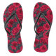 Rote Rosen mit grauen Blätter auf schwarz Flip Flops