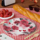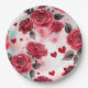 Rote Rosen mit Herz-Muster Romantische Pappteller