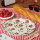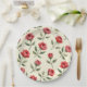 Aquarellfarbene Rote Rosen Papier Teller - Rustikales Vintages Blumendekor. Erleben Sie die stilvolle Dekoration mit eleganten Tellern, die ein nahtloses botanisches Muster samtiger rote Rosen zeigen. Die Rose sind in sanften Aquarellfarben handgemalt und diagonal über einen warmen, cremefarbenen Hintergrund angeordnet, ergänzt durch zarte grüne Stiele, Blätter und Blumenknospen. Das künstlerische Design verleiht dem Ganzen einen natürlichen, Vintag inspirierten Charme, der sich perfekt für Hochzeiten, Party im Garten, Brautparty, Tee-Party oder romantische Feierlichkeiten eignet. Diese Teller sind beständig und schön und bringen Funktionalität und Blumenstil an Ihren Tisch.