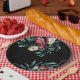 Hübsche Blumenmuster auf schwarzem Hintergrund Sets den Ton für diesen eleganten Teller.