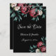 Schöne Blumenknospen und Elfenbeinknospen mit hübschem Grün. All das auf einem schwarzen Hintergrund und Sie erhalten pure Klasse. Eine schöne Wahl für Ihre Hochzeit lädt und "Save the Date" Korrespondenz.