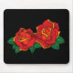 Zwei rote Rosen in schwarzem Hintergrund im traditionellen Tätowierstil.