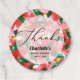 Runde Gastgeschenk Geschenktags Funktion Dank in einem schicken Skript und Ihre Party Details unten auf einer Collage von rote Rosen und Blätter, perfekt für Derby Party, Derby themed Brautparty. PASSENDE Artikel in unserer Sammlung.