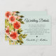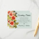 Elegante Hochzeitsdetails Gehäuse-Kartendesign mit roten Aquarellfarben Rose, grünes Blattwerk auf einem Minzhintergrund.