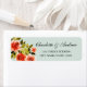 Romantische Hochzeitsstipps mit roten Aquarellfarben, grünem Blattwerk auf einem Minzhintergrund. Die Rücksendeadressen-Aufkleber sind romantisch mit Rose in Rot und Blau gestaltet.
