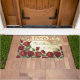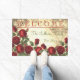 "WILLKOMMEN" mit Monogramm Vintage rote Rosen auf einem Not leidenden und altersgemachten Hintergrund große Türmatte Design für Sie zu personalisieren mit Ihrem Familiennamen und Hochzeitstag oder anderen Text, wie gewünscht. Design by Holiday Hearts Designs mit Vintagen Bildern (Rechte vorbehalten).