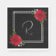 Dieses Design ist die Definition von Eleganz mit wunderschönen rote Rosen auf einem dramatischen schwarzen Hintergrund. Personalisieren Sie das Programm zunächst mit einem Monogramm.