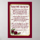 Vintager Vers von Robert Burns auf satiniertem Satin-Look im Hintergrund und verziert mit tiefem rote Rose-Spray mit bordeauxroter Grenze