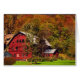 Die Helligkeit eines sonnigen Herbsttages wird auf dieser schönen Kunstphotographie-Anmerkungskarte gefeiert. Ist hier eine hochrote Scheune in einem Tal an der Unterseite eines Hügels, der mit reizenden Herbstlaubfarben von Rotem, von Orange, von Gelbem, Gold und Grün bedeckt wird. Die Fotografie ist erhöht worden, um einen impressionistischen, künstlerischen Effekt zu schaffen.