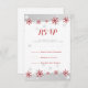 Rote Reihen von Schneeflocken und silbergraue Sterne zeitgenössische Hochzeitserie RSVP Antwortkarte, die elegante Schneeflocken und Sterne in silber grau. Ein zeitgenössisches, individualisierbares und personalisiertes Hochzeitsgeschmacksmuster für eine Weihnachtsfeier im Winter.