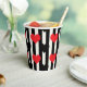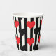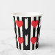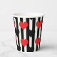 Rote schwarze Herzen auf Schwarz-weißen Streifen Pappbecher