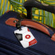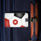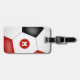 Dieses soccer-Thema Gepäckanhänger ist einfach mit einem abstrakt vergrößerten Single in Rot, Schwarz und Weiß - personalisieren Sie mit Monogramm auf der Vorderseite, Adressdaten auf der Rückseite - von katz_d_zynes