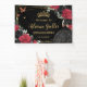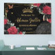 Koordinieren Sie Ihr Party mit diesem eleganten personalisierten, lebendigen Rot- und Schwarz-Rose-Hintergrundbanner! Personalisieren Sie es einfach und schnell, klicken Sie einfach auf die Schaltfläche Bearbeiten mithilfe von Entwurfswerkzeugen, um den Text weiter zu bearbeiten, Schriftart-Stile und Schriftart-Farben zu ändern. Mit wunderschönen, blühenden Rose in Rot und Schwarz, einem Mädchen in glitzerndem schwarzem Gewand, Schmetterlingen, schicken goldenen Akzenten und einem schwarzen Hintergrund. Dieses exquisite Banner im Hintergrund ist perfekt für Quinceaneras, Sweet 16, 18. Geburtstag, Brautpartys und viele andere Anlässe! Matching-Elemente im Speicher verfügbar. c) Somerset Fine Paperie