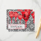 Elegante rote chinesische Laternen über schwarz-weißem Damast-Druck.