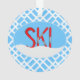 Rote Skier und Schnee in einem Oval Ornament